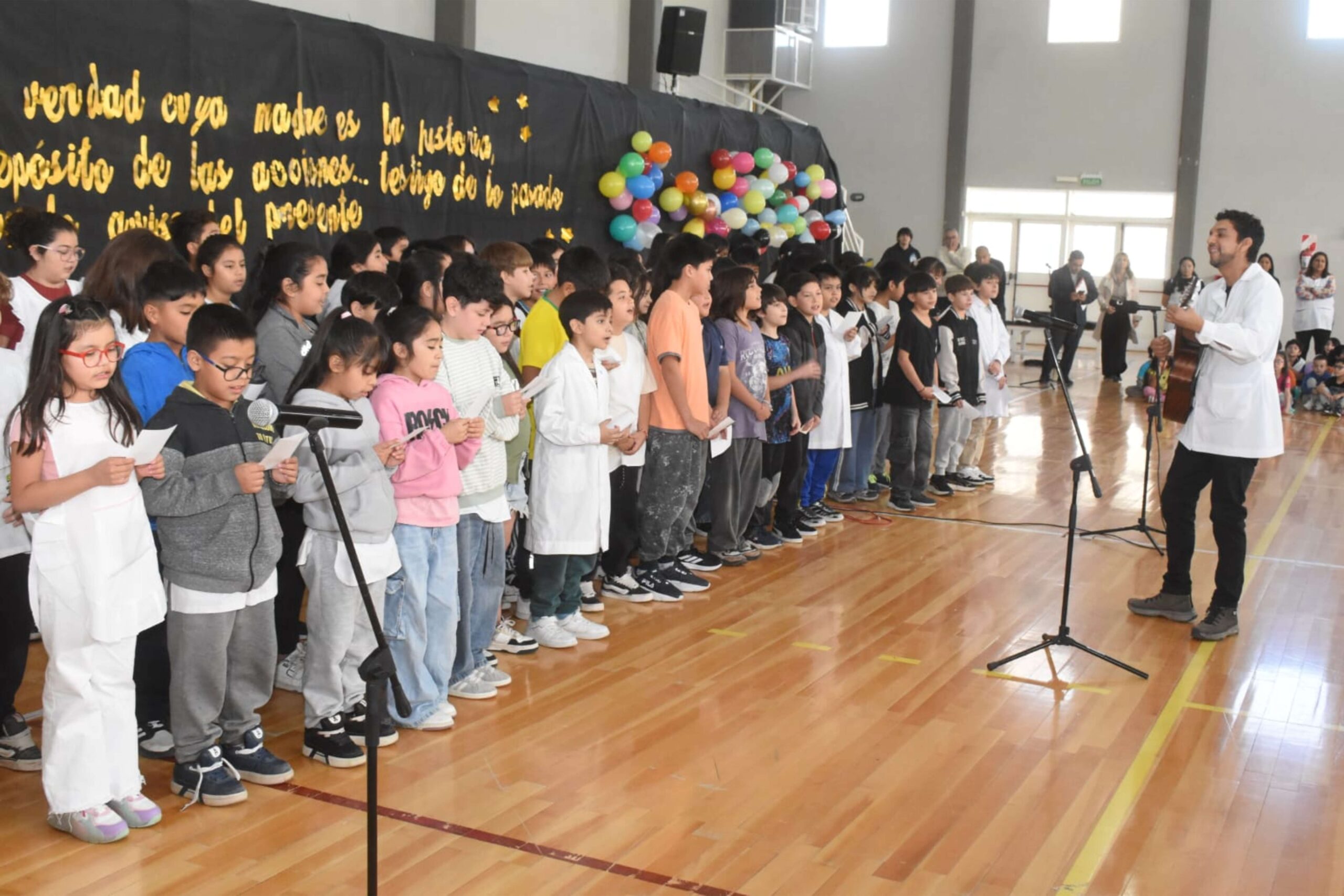 El toque artístico lo aportaron los estudiantes de 4°, 5° y 6° año. Bajo la coordinación del profesor de música Juan Narvaja, los alumnos interpretaron una milonga campera del reconocido payador Marcelo Marín, despertando el aplauso sostenido de los presentes y reforzando el sentido de pertenencia regional que caracteriza a la institución.